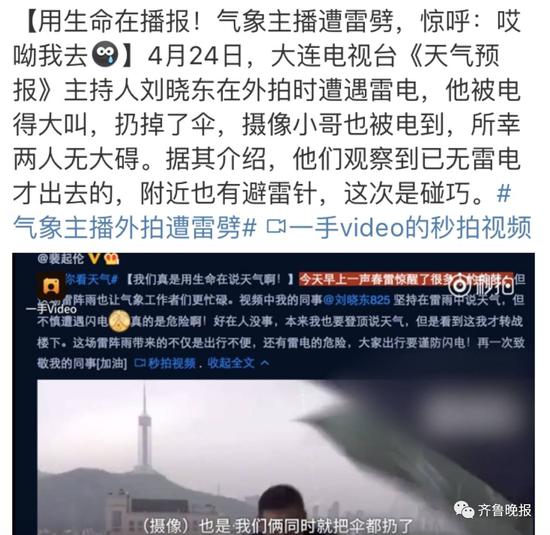 说起当时的情形,刘晓东表示,4月24日上午9时到室外为中国气象出新闻,由于工作性质的原因,越是天气恶劣他们越得需要出镜。